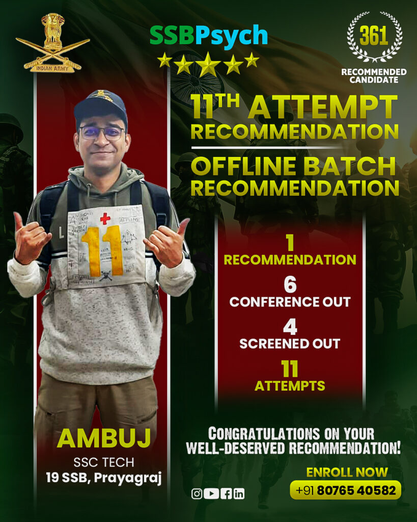 Tags: SSB Interview Preparation, SSB Coaching in Delhi, SSB Psychology Training, SSB GTO Preparation, SSB IO Interview Guidance, How to Clear SSB, SSB Recommended Candidate, Defence Academy Coaching, Officer Like Qualities, SSB Success Story, Wear Your Medals Activity, Calendar Analysis SSB, SSBPsych Techniques, Confidence Building for SSB, Team Spirit in SSB, SSB Experience, SSB Mentorship, Defence Aspirant Journey, Mini Mock Interviews SSB, Calendar Activity SSB, Wear Your Medal Activity, SSB Confidence Building, SSB Personality Development, SSB Conference Out Experience, SSB Screened Out Journey, Defence Aspirant Success Story