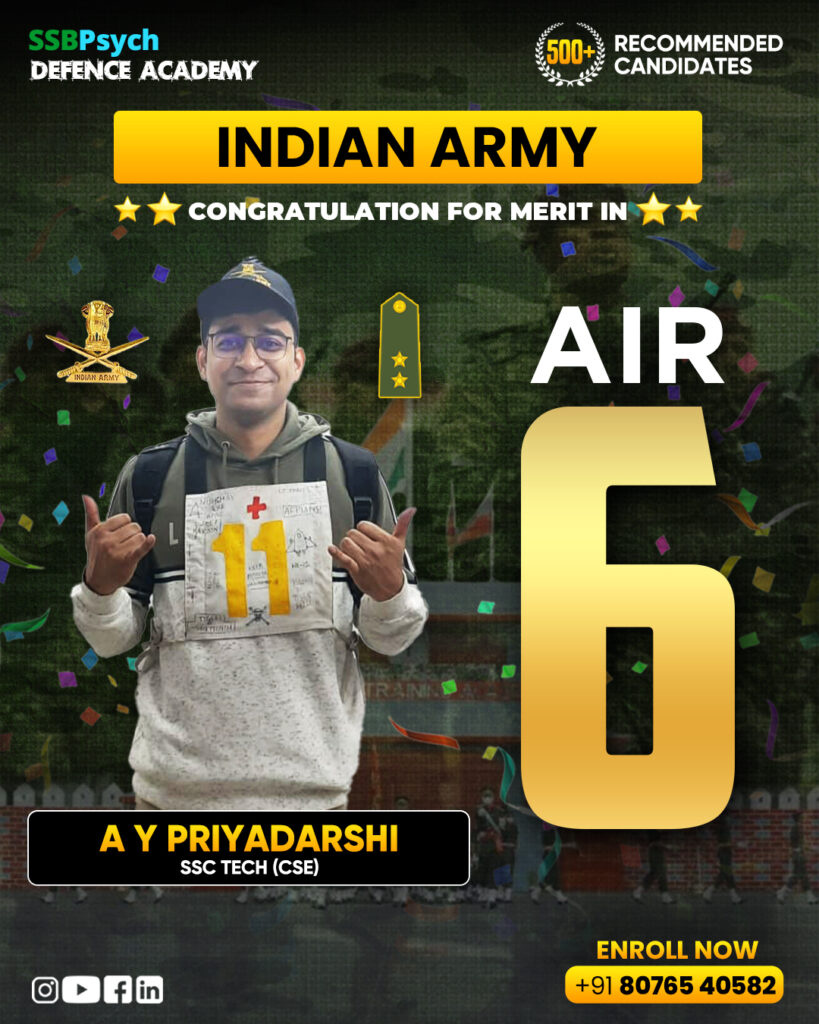 Massive congratulations to A Y Priyadarshi for securing All India Rank 6 in SSC Tech (CSE). Excellence is built daily through consistency, clarity, and mental strength. Securing a single-digit rank reflects exceptional hard work and unwavering focus. Outstanding achievement. SSBPsych is immensely proudπ―